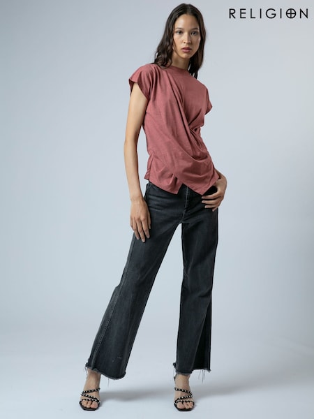 Religion Orange Faux Wrap Fitted Time T-Shirt In Overdyed Marl