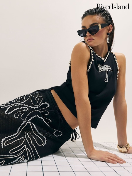 River Island Cream Sleeveless Floral Border Print Vest Blouse