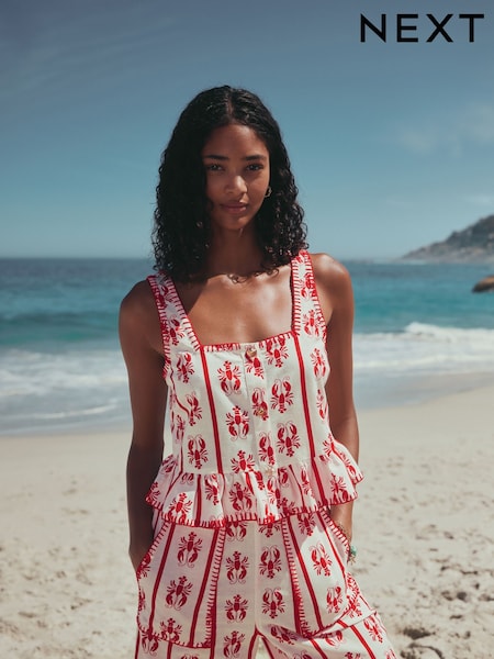 Red/White Stripe Sailor Collar Sleeveless Top with Linen
