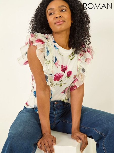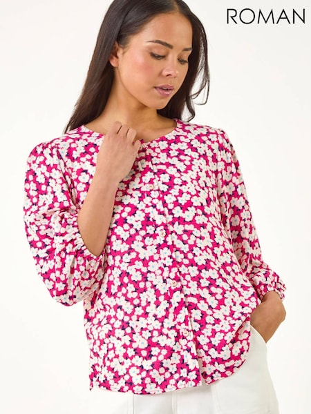 Roman Orange Abstract Stripe Crochet Knit Blouse
