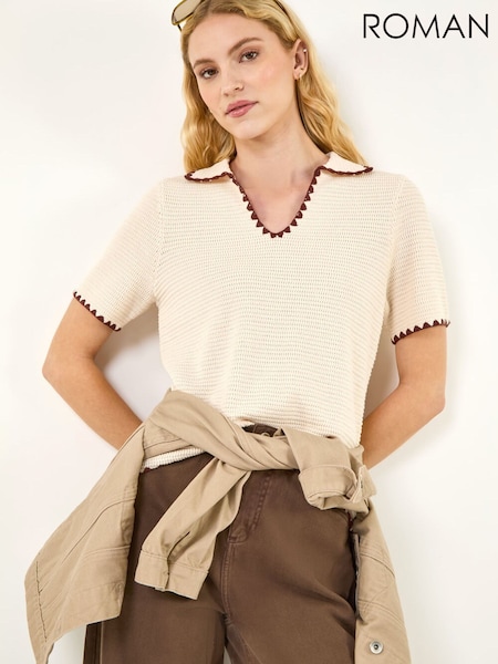 Roman Pink Short Sleeve Ruffle Stretch T-Shirt