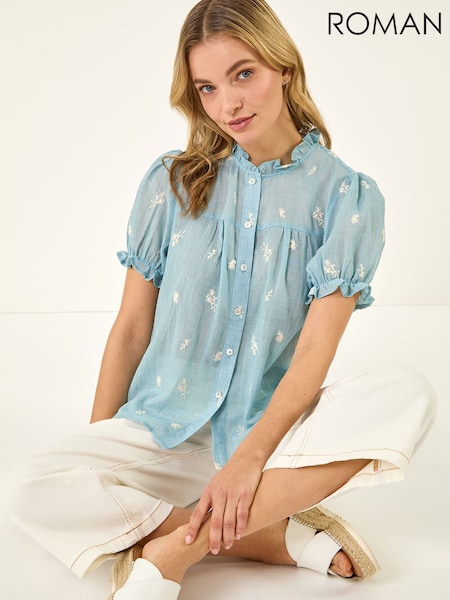 Roman Blue Floral Embroidered Shirt