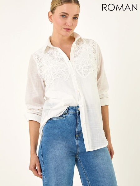 Roman White Lace Trim Button Shirt