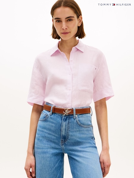 Tommy Hilfiger Pink Relaxed Fit Pure Linen Short Sleeve Shirt