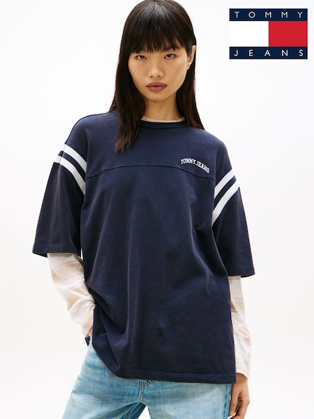 Tommy Jeans Blue Logo Oversized Crew Neck T-Shirt