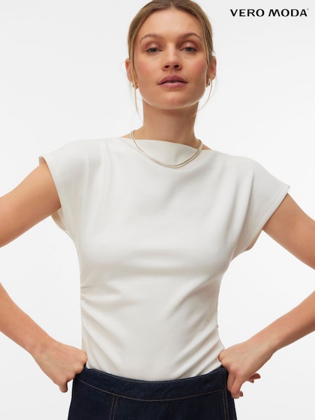 Vero Moda White Short Sleeve Boat Neck T-Shirt