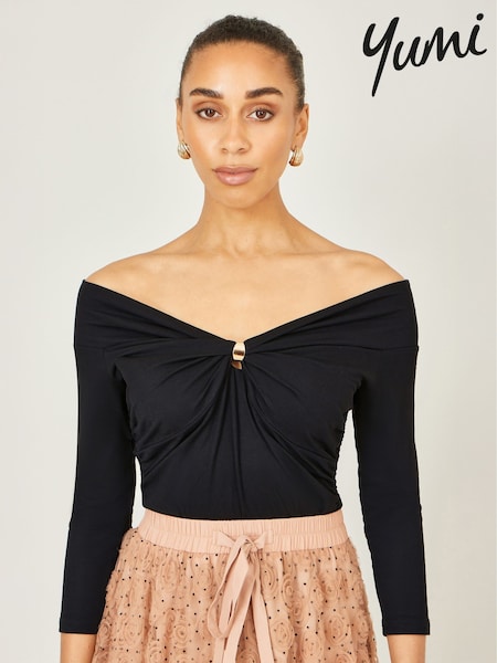 Yumi Black Off The Shoulder Jersey Top
