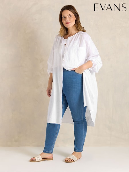 Evans White Pintuck Slub Henley 100% Cotton Top