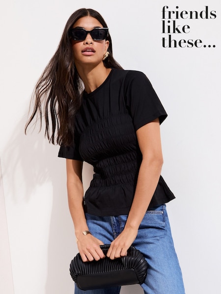 Friends Like These Black Shirred Body T-Shirt