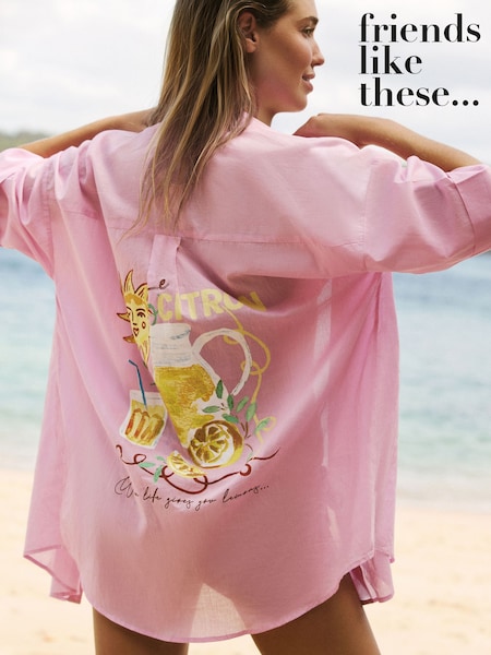 Friends Like These Pink Button Up Beach Cover-Up Shirt