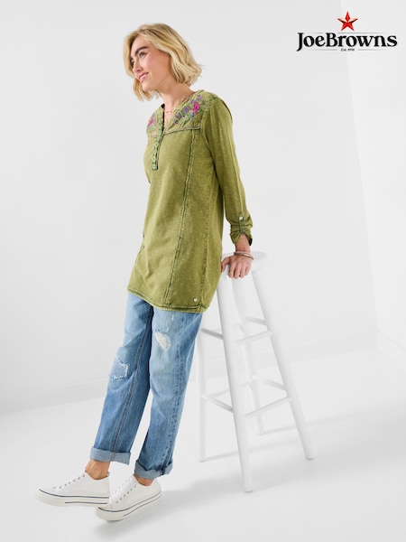 Joe Browns Green Boho Embroidered Jersey Tunic Top