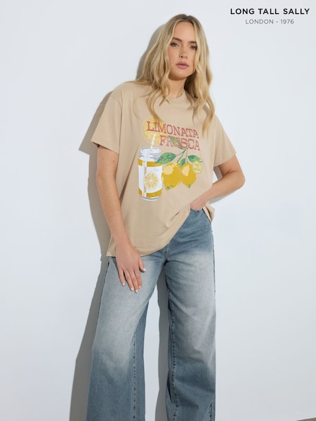 Long Tall Sally Natural Lemonade Oversized Print T-Shirt