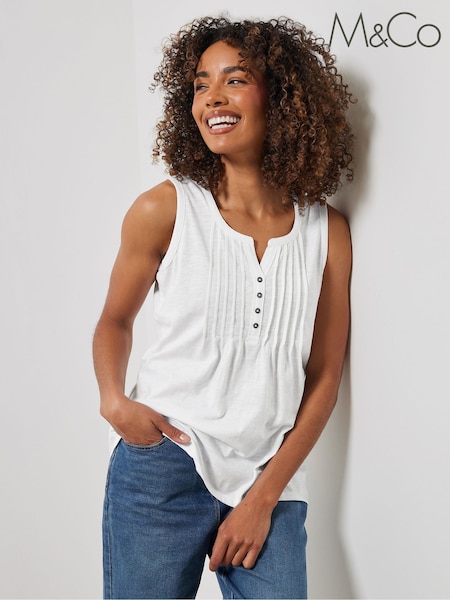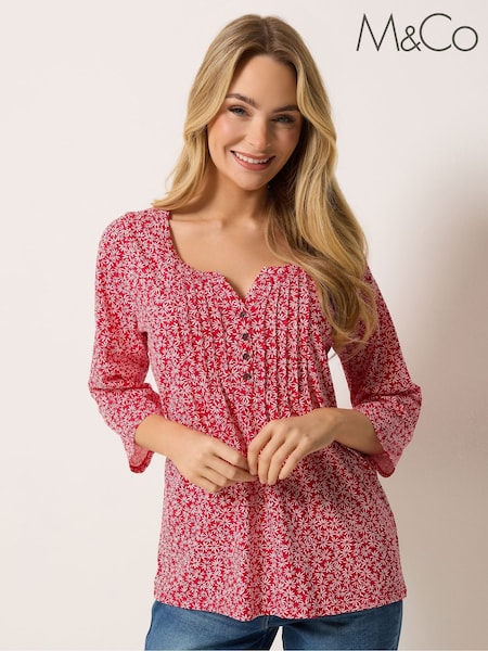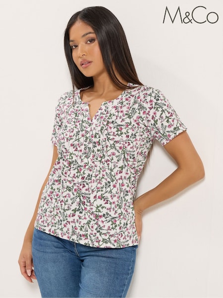 M&Co Blue Petite Floral Cotton Scoop Neck Top