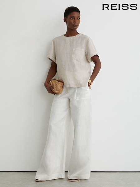 Reiss Beige Neutral Tamara Linen Patch-Pocket T-Shirt