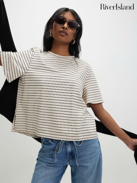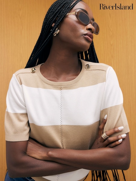 River Island Cream Short Sleeve Striped Top