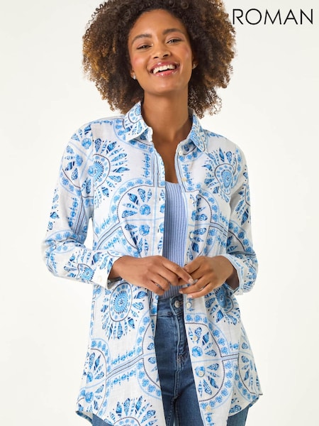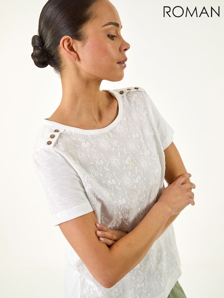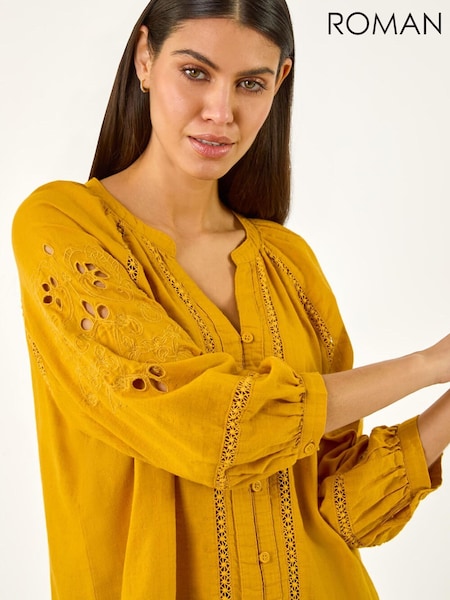 Roman Yellow Embroidered Cotton Sleeve Blouse