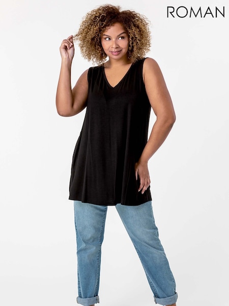 Roman Green Curve Textured V-Neck Stretch Blouse