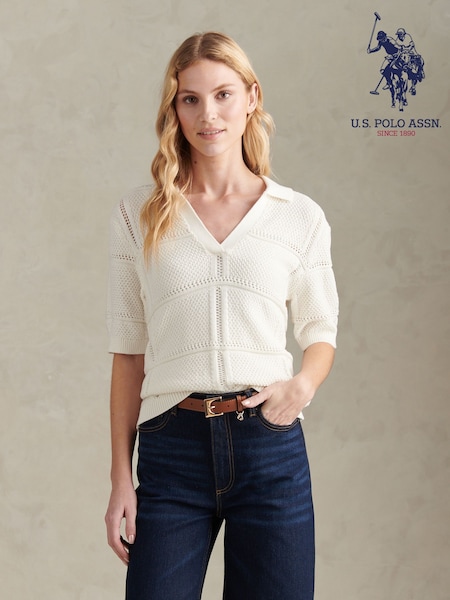 U.S. Polo Assn. Cream Crochet Knit Polo Shirt