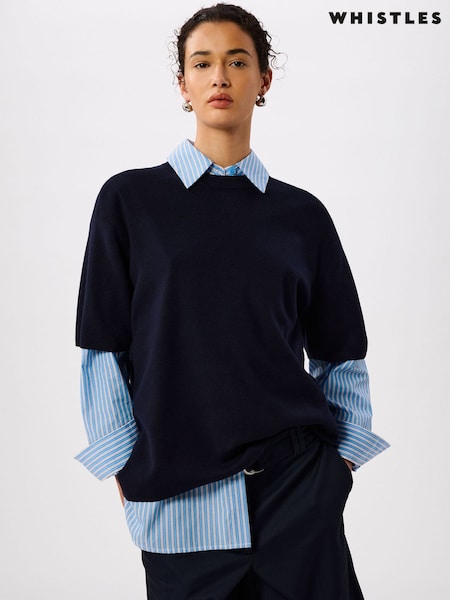 Whistles Blue Relaxed Long Sleeve 100% Cotton T-Shirt