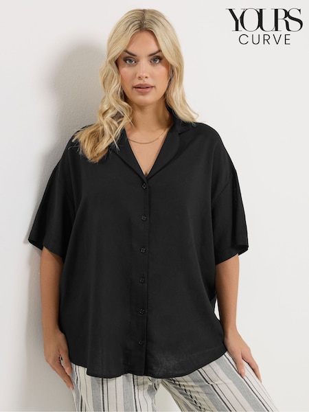 Yours Curve Black Linen Blend Resort Shirt