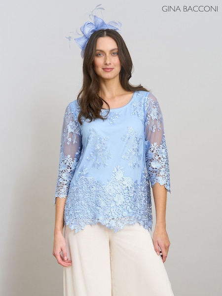 Gina Bacconi Blue Kirsten Embroidered Blouse With Scallop Detail