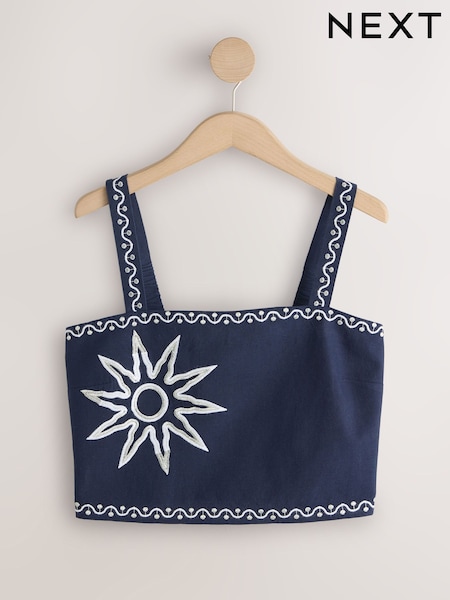 Navy/White Embroidered Sun Wide Strap Top