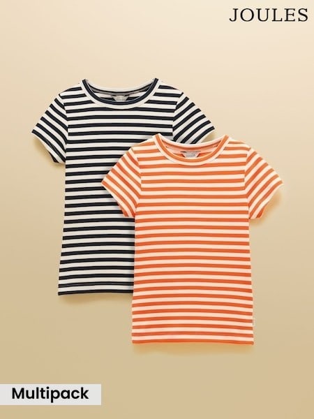 Joules Sophie Navy & Orange Ribbed Short Sleeve T-Shirts 2 Pack