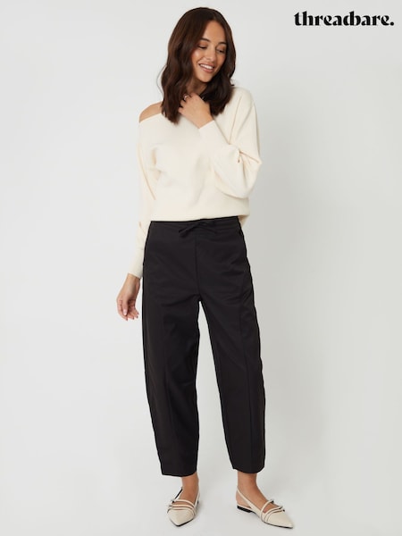 Threadbare Black Curved Seam Barrel Leg Trousers