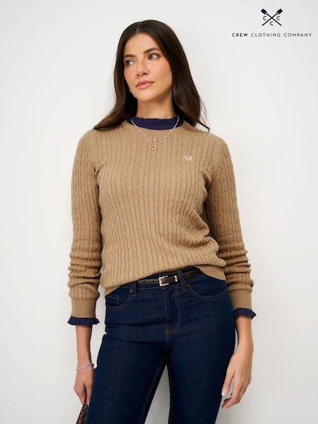Crew Clothing Brown Heritage Cable Crew Neck Jumper