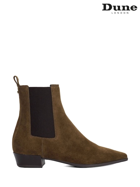 Dune London Dark Brown Parkas Chisel Western Chelsea Boots