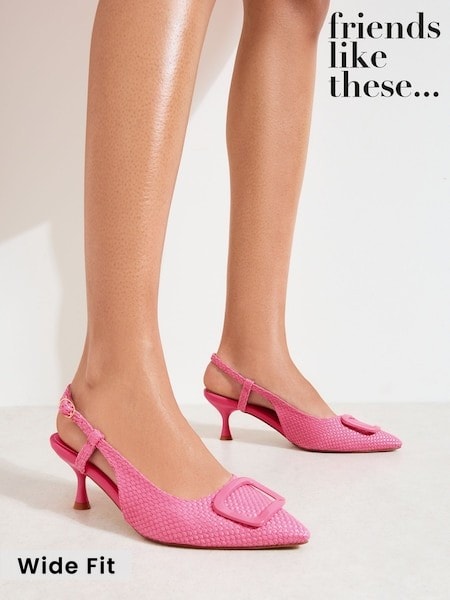 Friends Like These Pink Woven Raffia Wide Fit Buckle Detail Slingback Kitten Heel Smart Court Shoes