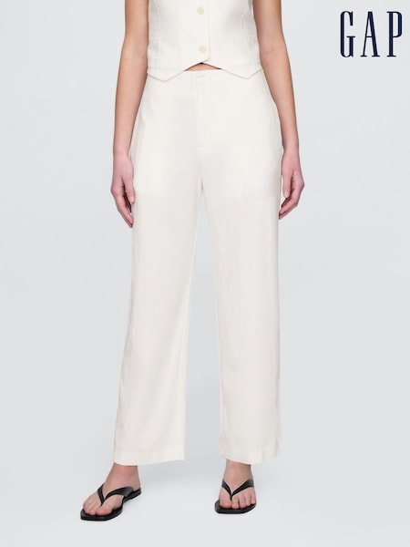 Gap White Linen Blend Relaxed Straight Trousers