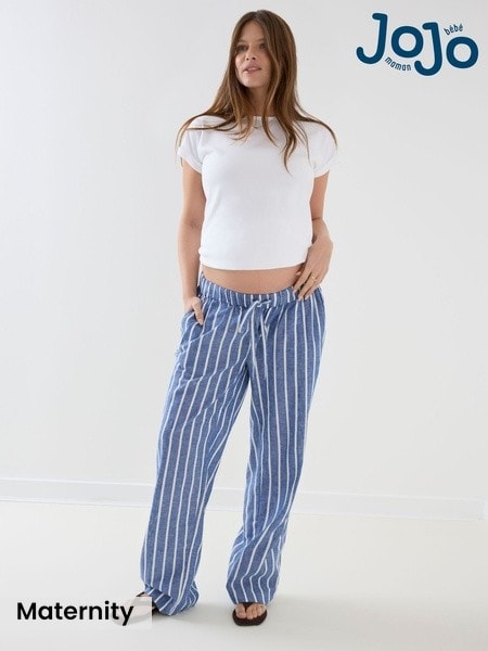 JoJo Maman Bébé Navy Linen Blend Drawstring Waist Wide Leg Maternity Trousers