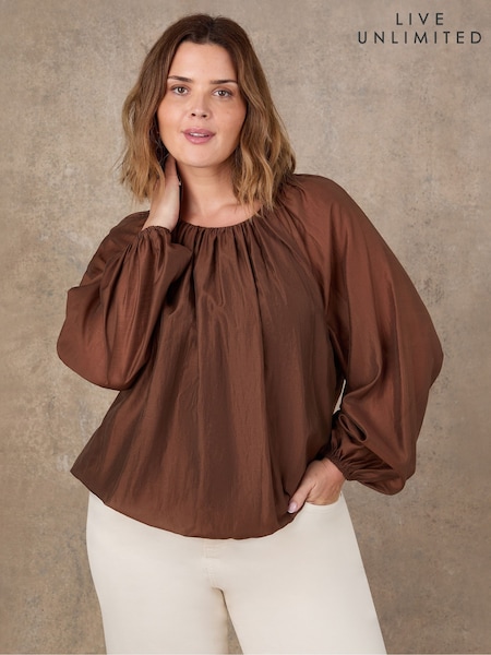 Live Unlimited Brown Blouson Sleeve Boho Blouse