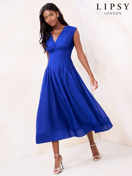 Lipsy Cobalt Blue Petite Cinched Waist V-Neck Maxi Dress