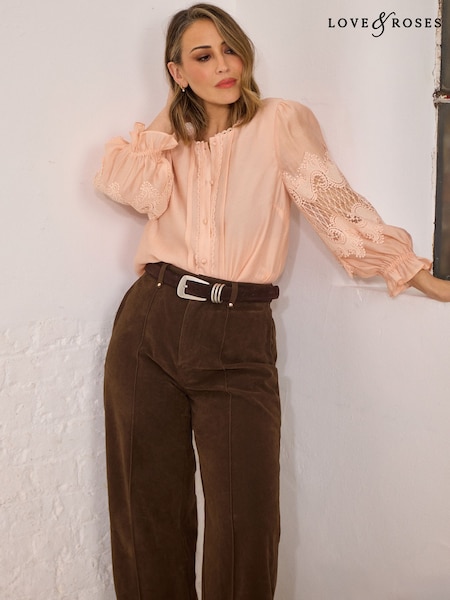Love & Roses Apricot Petite Lace Long Sleeve Button Front Blouse