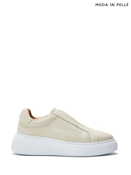 Moda in Pelle White Alber Leather Slip On Wedge Trainers