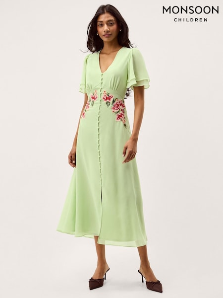 Monsoon Green Coraline Floral Embroidered Midi Dress