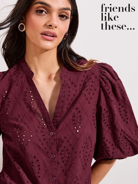 Friends Like These Burgundy Red Broderie Short Puff Sleeve Blouse