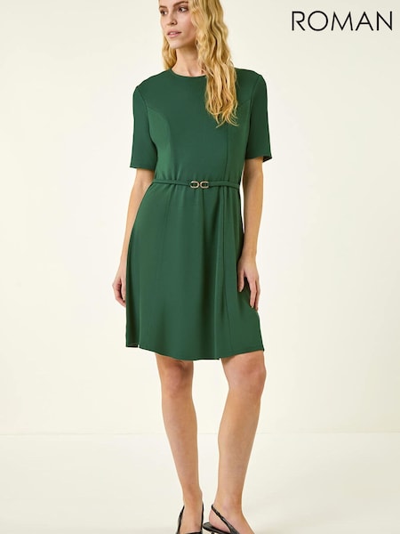 Roman Green Belted Fit & Flare Dress