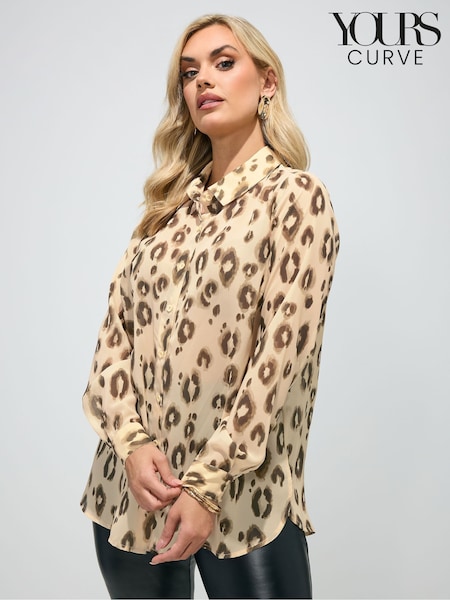 Yours Curve Natural London Leopard Print Metallic Chiffon Blouse