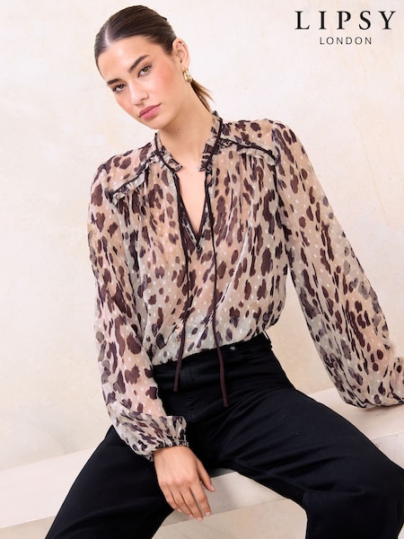 Lipsy Neutral Animal Tie Neck Blouse