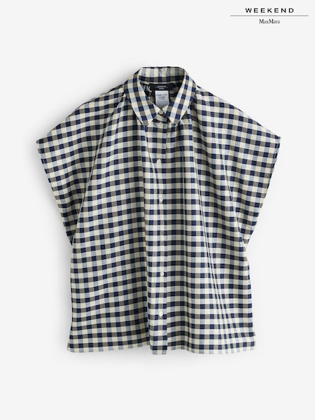 Weekend MaxMara Blue Strano Loose Fit Gingham Blouse