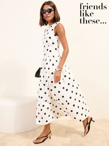 Threadbare Black Polka Dot Elasticated Waist Cotton Poplin Midi Dress