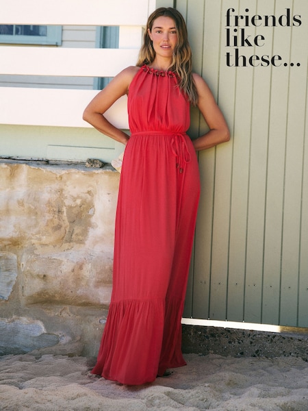 Friends Like These Coral Pink Beaded Neck Sleeveless Maxi Dress Beach Cover-Up