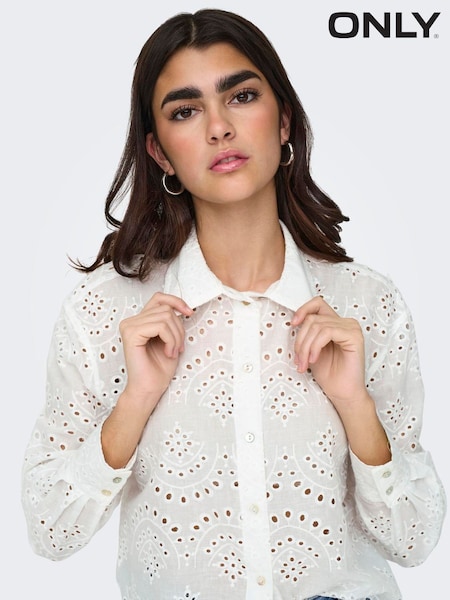 ONLY White Broderie Anglais Button Through Shirt