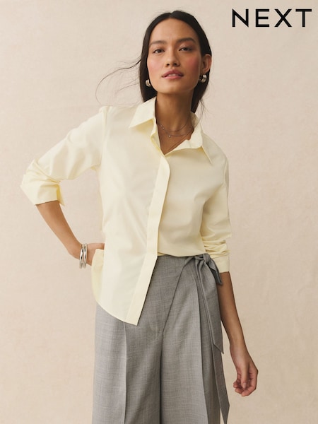 Buttermilk Yellow Fitted Stretch Essential Long Sleeve Shirt