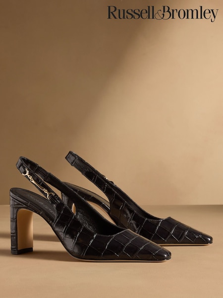 Russell & Bromley Black Marley Heeled Snaffle Slingbacks