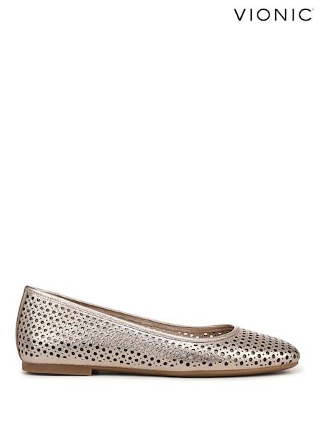 Vionic Gold Orinda Perf Regular Fit Arch Support Ballet Flat Shoes