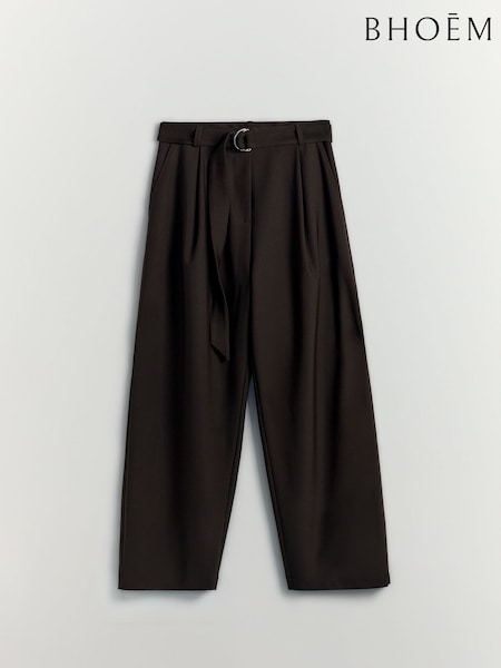 BHOEM Tapered Belted Tailored Chocolate Brown Trousers